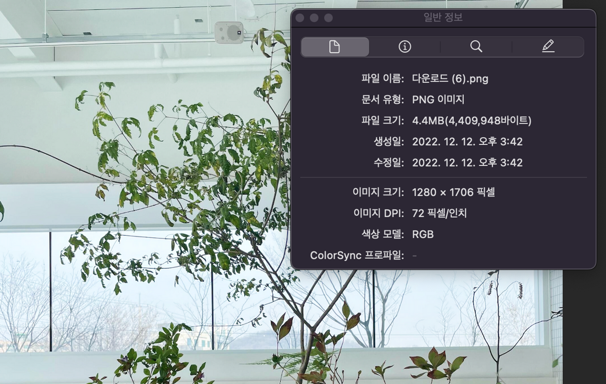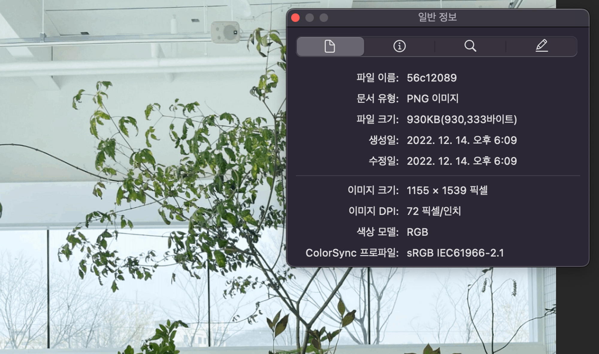 기존의 4.4MB사진에서 930KB로 파일크기가 줄어들었으며