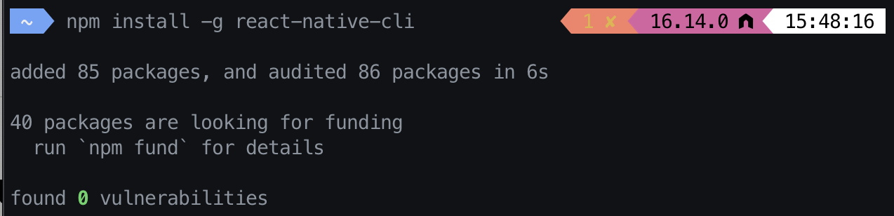 `npm install -g react-native-cli` 결과 이미지